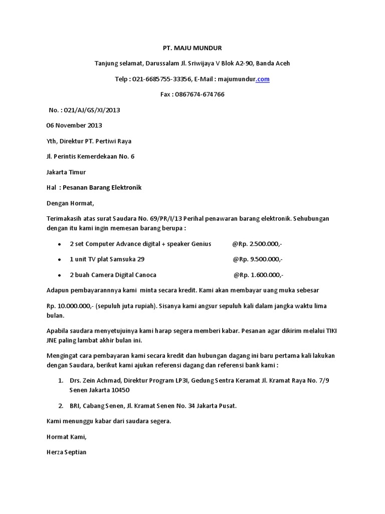 Contoh surat permintaan order barang. We did not find results for: Maybe you would like to learn more about one of these? Check spelling or type a new query.